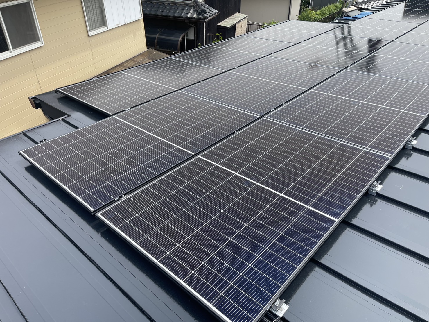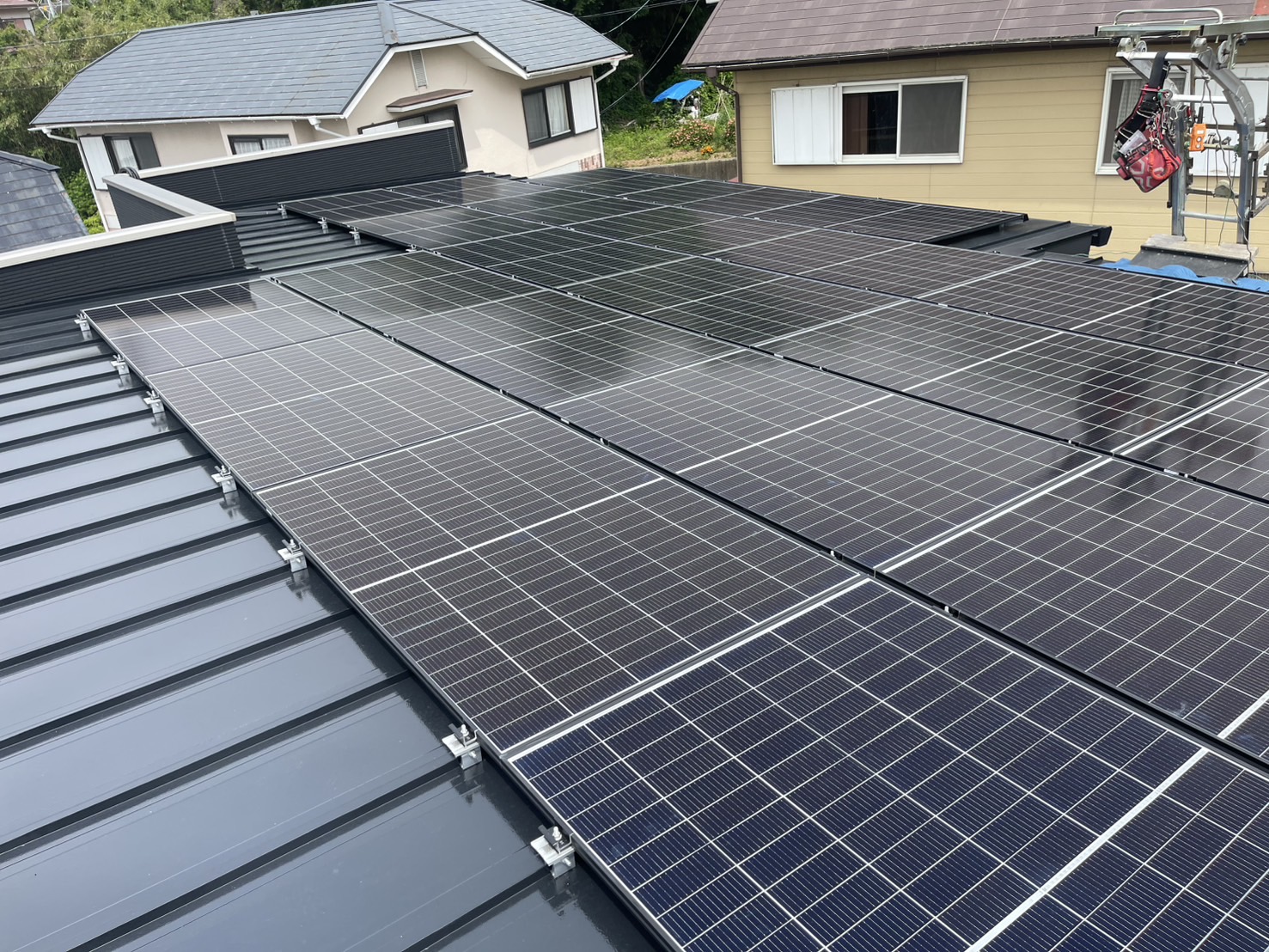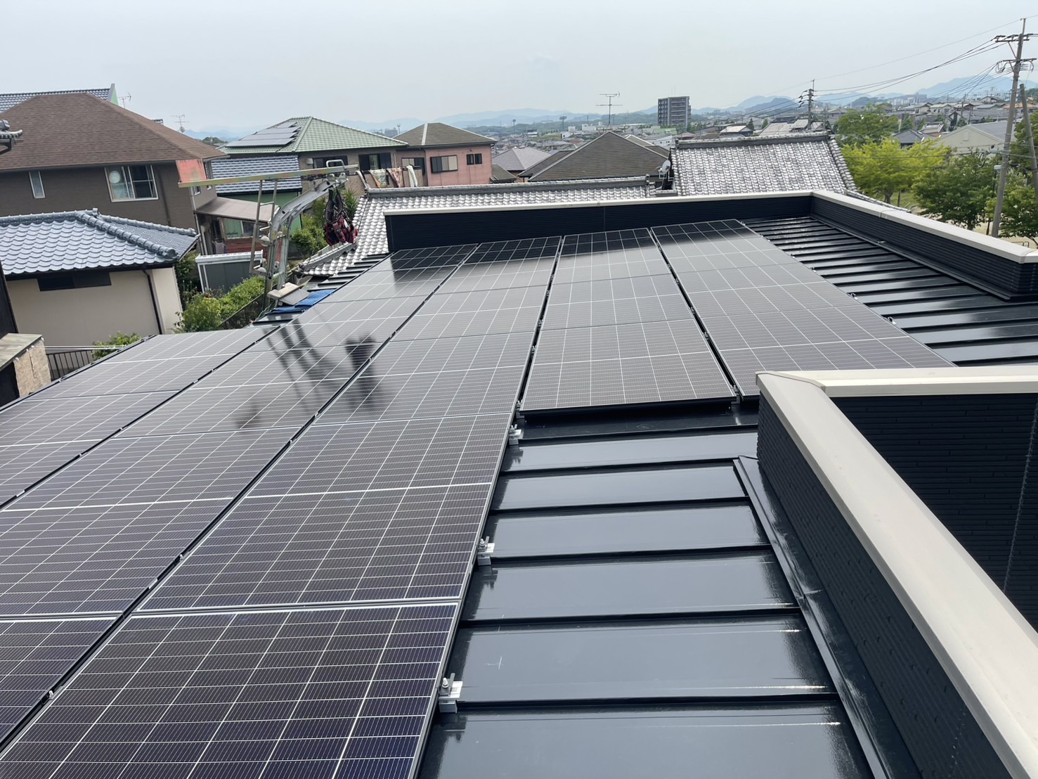 北九州市にて太陽光発電システムの設置工事を行いました。屋根の形状に合わせて効率的にパネルを配置し、安定した発電ができるよう設計しています。環境にも家計にも優しい太陽光発電で、これから長く安心してお使いいただける仕上がりとなりました。