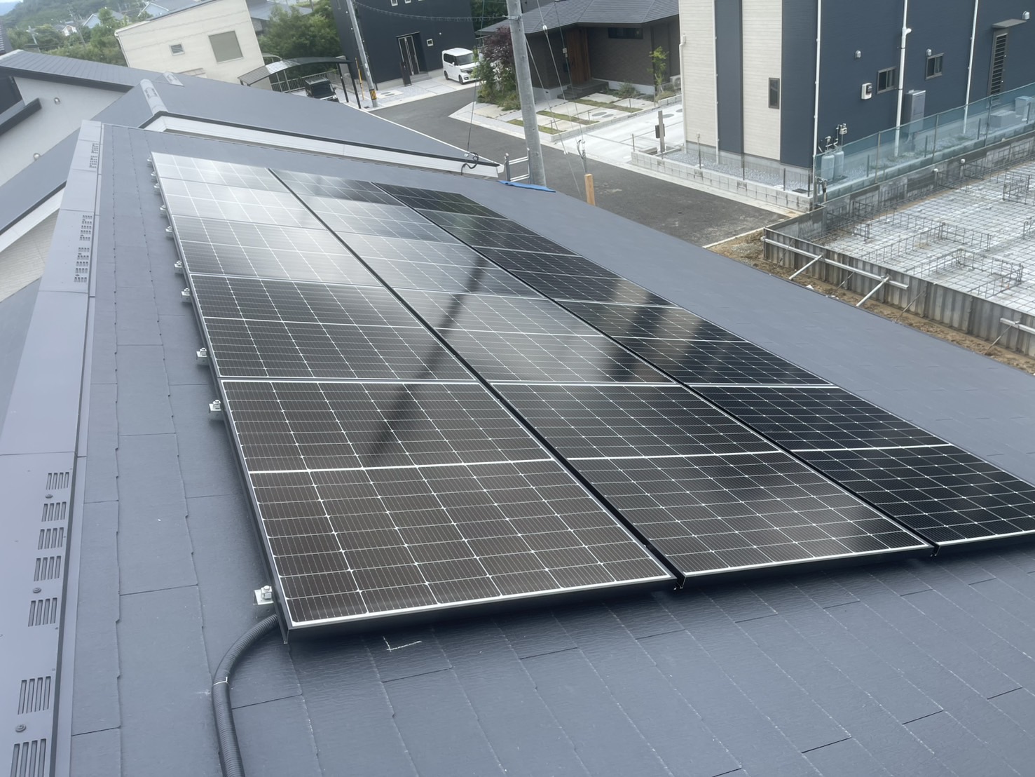 屋根の形状に合わせて効率的なレイアウトを設計し、見た目も美しく仕上げています。